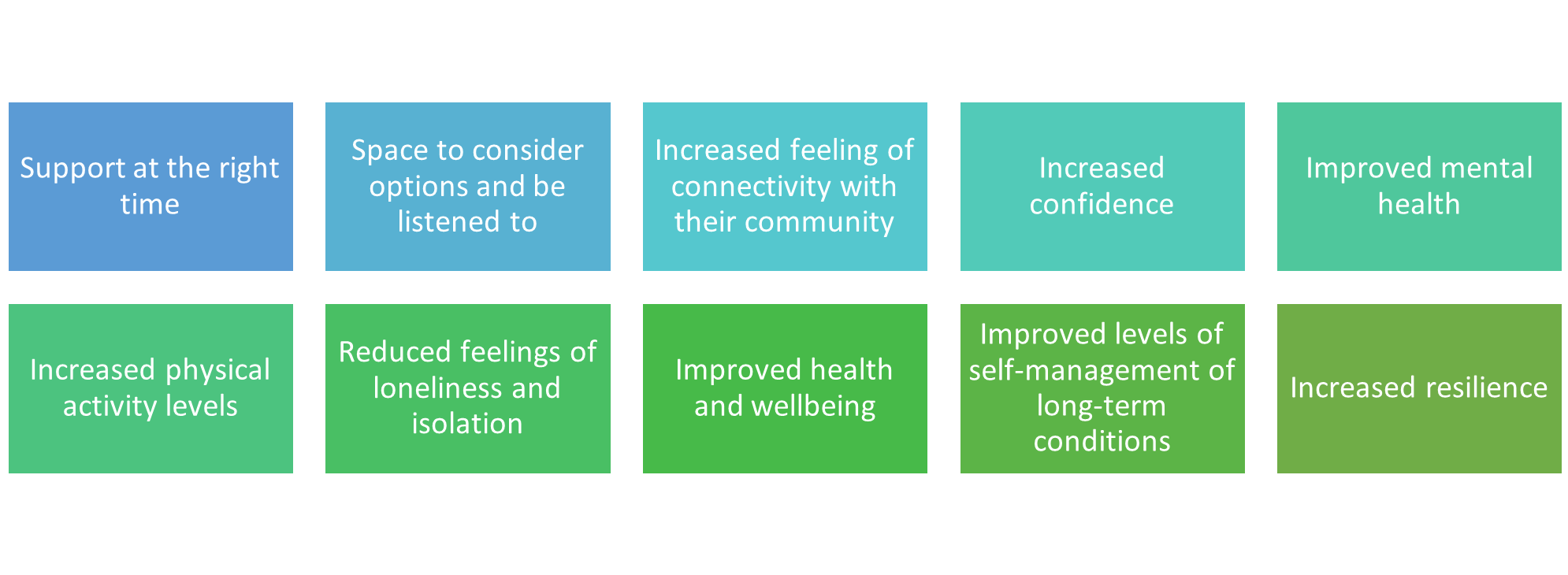The goal of this is for an individual to be better equipped to manage their own health and wellbeing. Some of the benefits of this can be found below: