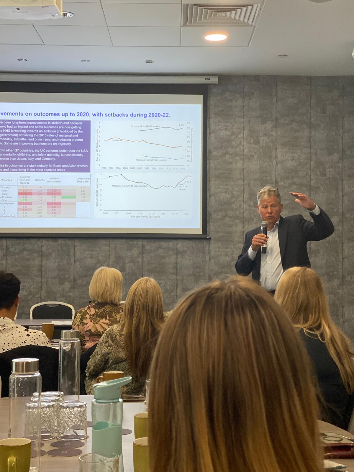 Kate and Donald discussed the current challenges facing maternity services with increasing complexities with pregnant women increasingly high risk, more premature babies which leads to more interventions and complexity with caesarean rates increasing up to 39.4% in 2022/23 from 48% in 2021/22. Antenatal and postnatal intervention are improving which leads to increased survival and rise in activity within our neonatal units.