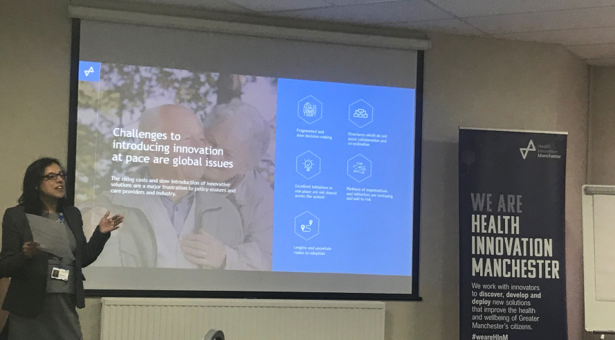 Cara Azfal, Senior Programme Developement Lead at Health Innovation Manchester began by giving guests a presentation on the role of Health Innovation Manchester, and in the purpose of the event; setting the context before the background of the TMACS project was discussed.