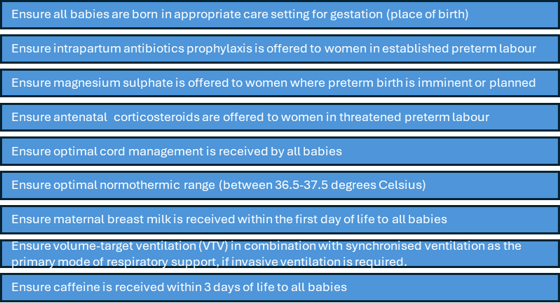 There is compelling evidence that babies who receive all the appropriate aspects of the interventions have improved outcomes. The British Association of Perinatal Medicine (BAPM) have released a perinatal quality improvement (QI) package to support maternity and neonatal providers to implement. Further information can be found here.