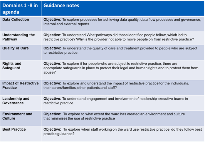 The MHSIP involves rolling out a tried and tested change package for reducing restrictive practice (RRP), based on a pilot undertaken by the National Collaborating Centre for Mental Health, to bring about systematic and sustainable improvement in patient safety by utilising quality improvement approaches and methodology.