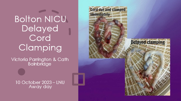 Vicky Parrington and Cath Bainbridge from Bolton NHS Hospital neonatal unit gave a presentation on how they had worked as a perinatal team to improve the number of babies receiving optimal cord management (OCM) employing QI methodology which has seen an improved and sustained data.